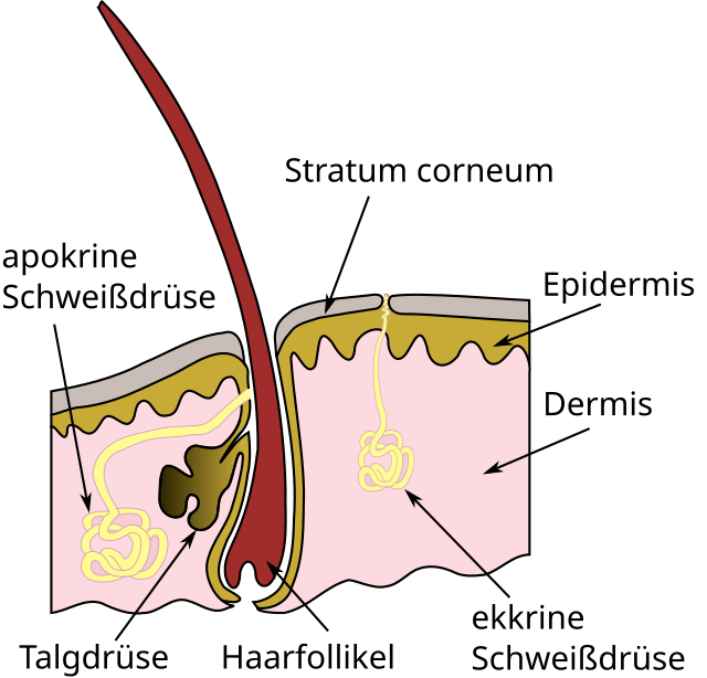 Frischer Schweiß ist nahezu geruchlos: Er besteht fast nur aus Wasser und Salz. Der typische Schweißgeruch entsteht dann, wenn Bakterien auf der Haut den Schweiß zersetzen. Bei diesem Prozess entstehen Buttersäure, Ammoniak und andere Stoffe, die den unangenehmen Geruch auslösen.